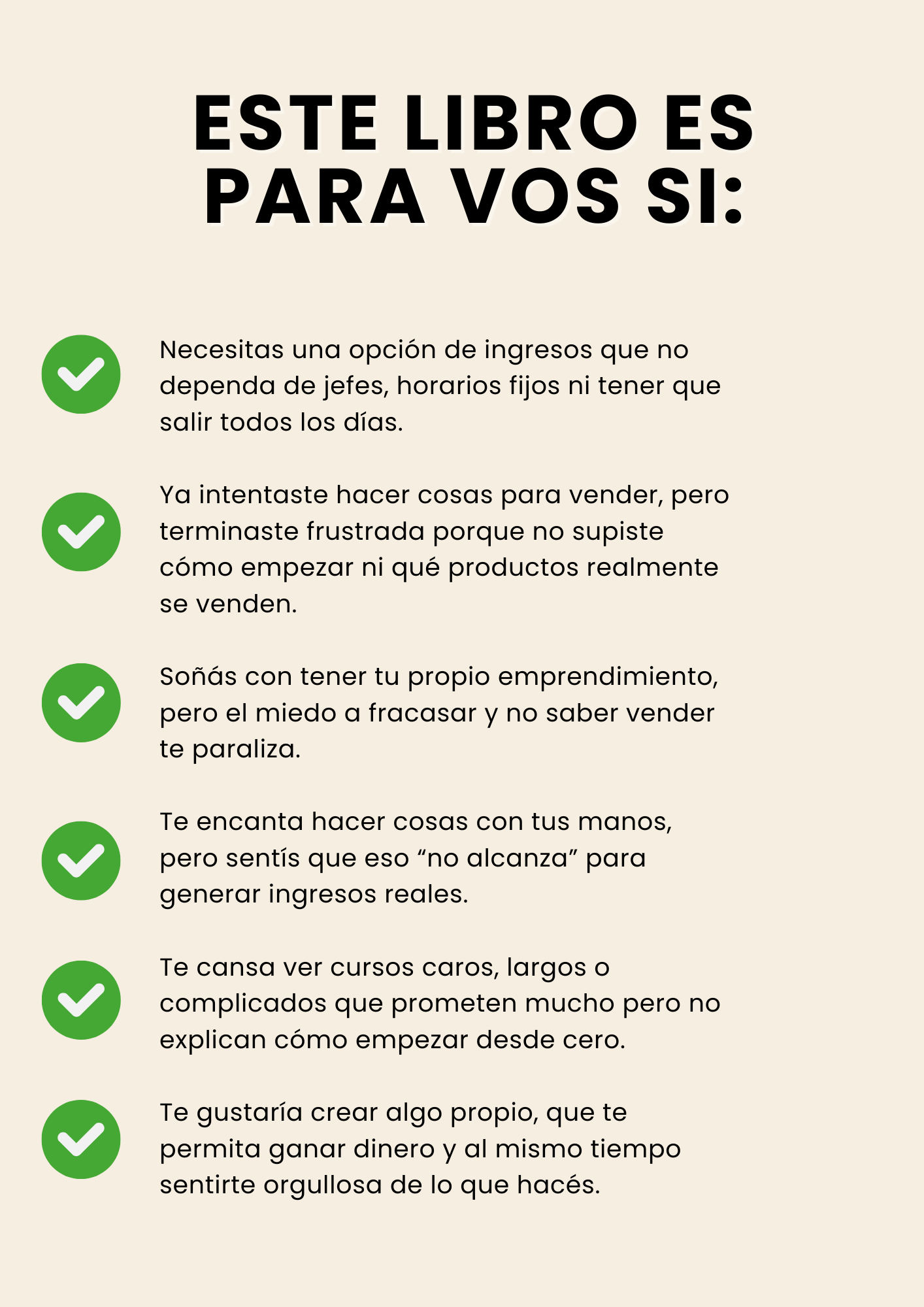 Sí. En el ebook también te doy ideas simples para empezar a vender, aunque no tengas experiencia en marketing ni redes.