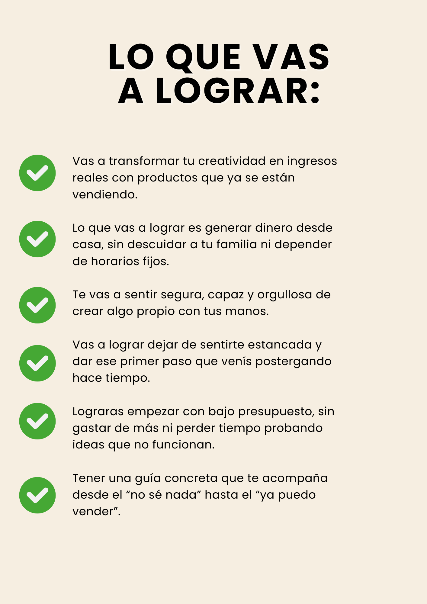 Depende de tu ritmo, pero muchas personas logran crear y vender sus primeros productos en 1 a 3 semanas.